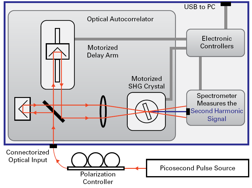 FROG使用较长的机械平移台来提供高达200 ps的扫描范围,从而可以对高达50 ps的长脉冲进行自相关测量。而市场上可测量如此大的皮秒脉冲及宽度低至300 fs的短脉冲的脉冲分析仪屈指可数。
